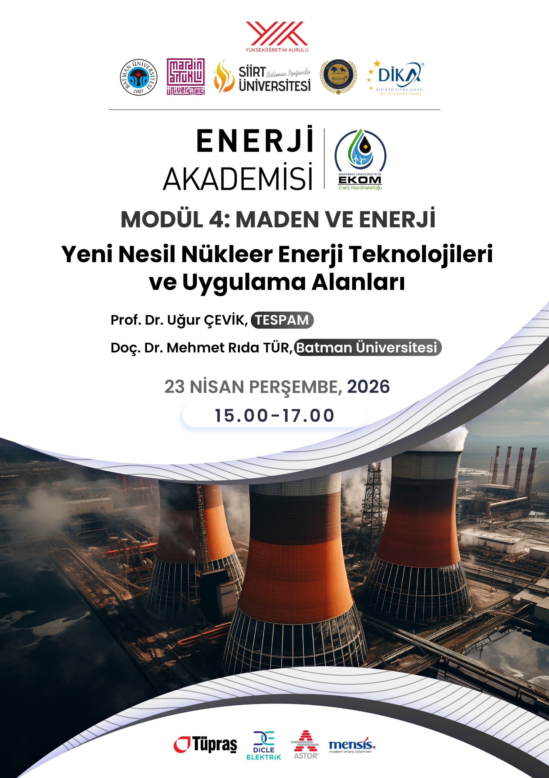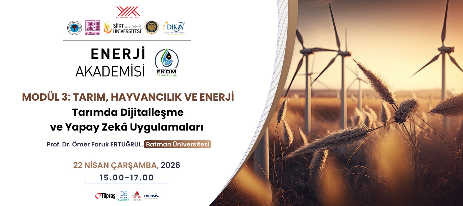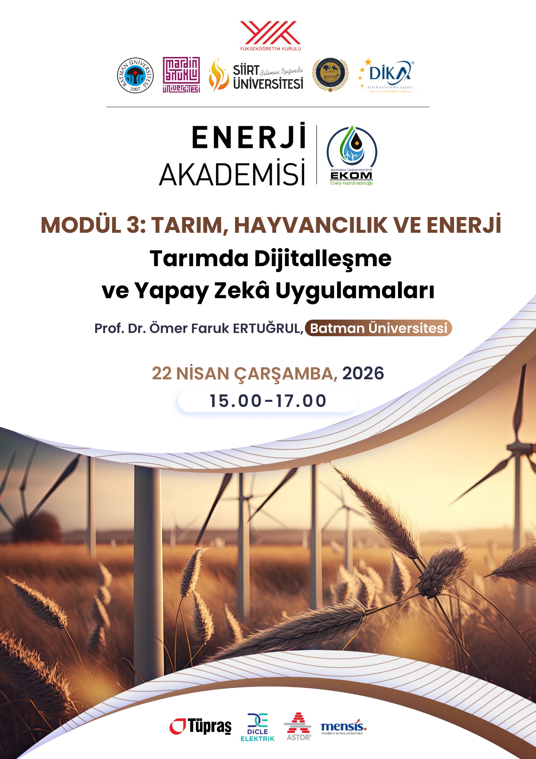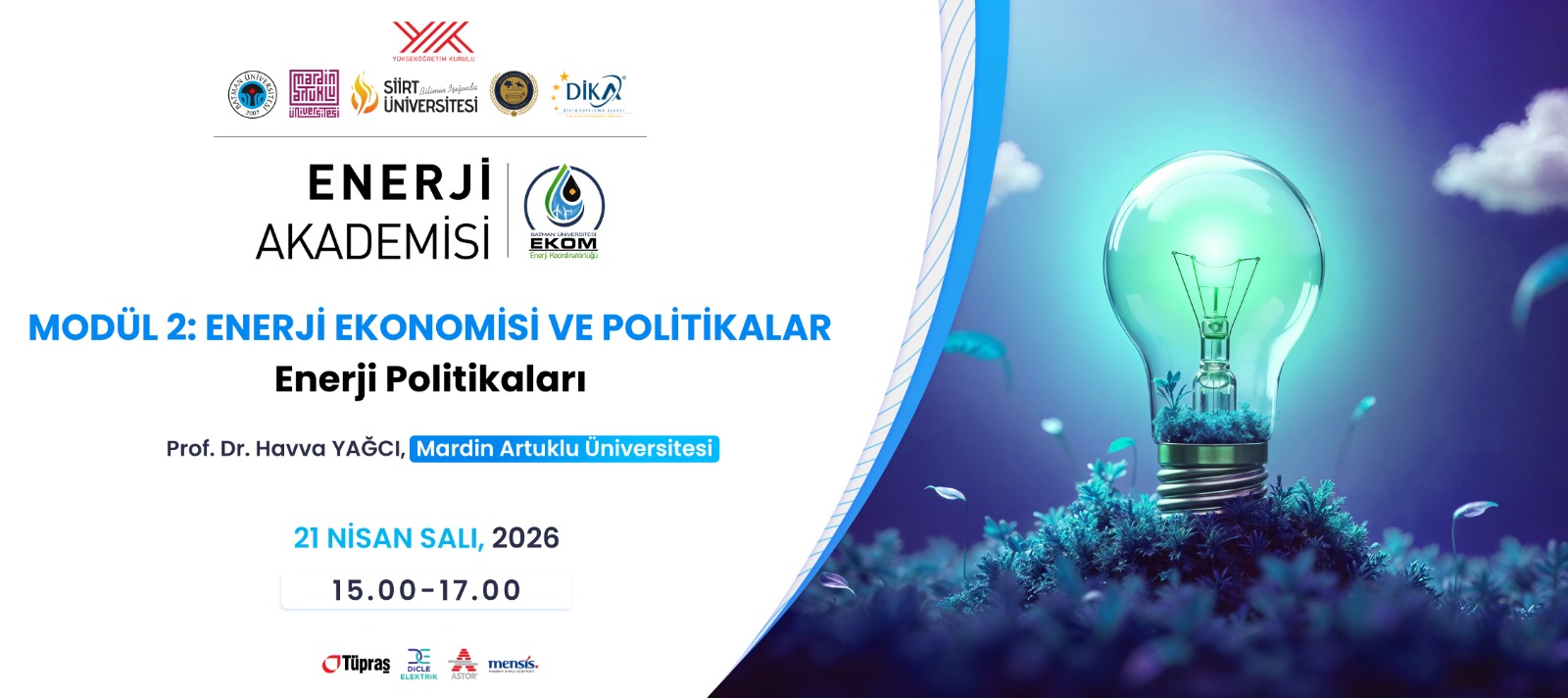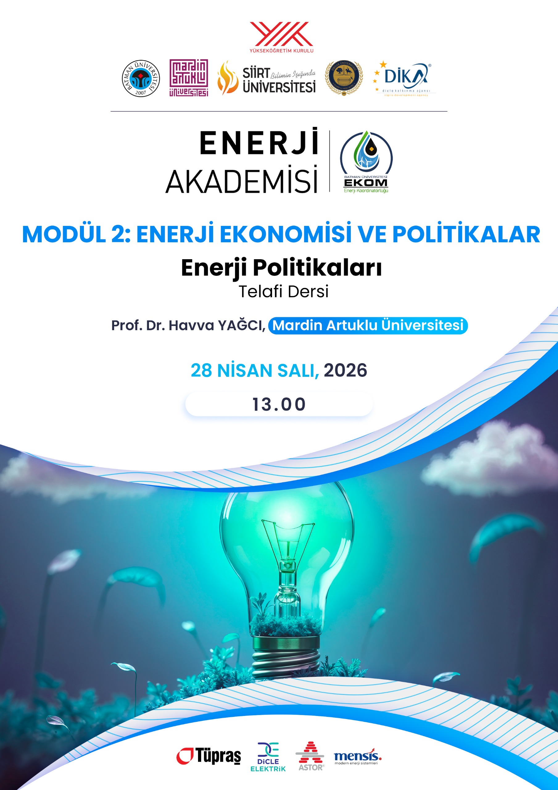 02 Şubat 2026 – 30 Mayıs 2026 tarihleri arasında, çevrim içi olarak gerçekleştirilecek olan bu program; akademi, kamu ve özel sektörün ihtiyaç duyduğu güncel bilgi ve becerileri katılımcılara kazandırmayı hedeflemektedir. Program kapsamında katılımcılar, enerji sistemleri analizi, enerji ekonomisi ve politikaları, tarım-hayvancılık-enerji ilişkisi, maden ve enerji, kurumsallık ve sürdürülebilirlik ile uluslararası enerji politikaları olmak üzere 6 farklı ders modülünden dilediklerini seçerek eğitim alabilecek; böylece ilgi alanlarına ve kariyer hedeflerine uygun esnek bir öğrenme süreci yaşayabileceklerdir. Eğitimler; alanında uzman akademisyenler ve sektör temsilcileri tarafından yürütülecektir. Yeşil dönüşüm sürecinde karar verici, uygulayıcı ve analiz yapabilen bireyler yetiştirmeyi amaçlayan Enerji Akademisi, katılımcılara enerji alanında güçlü bir vizyon kazandırırken, bölgesel ve ulusal kalkınmaya da katkı sunmayı hedeflemektedir.